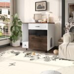 Be the first to review “Cat Litter Box Enclosure, Indoor Hidden Cat Litter Box Furniture with 2 Drawers and Door, Cat House End Table for Living room, White and Brown” Cancel reply
