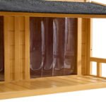 - ENJOY A LUXURIOUS AND SECURE LIVING ENVIRONMENT: This outdoor wooden dog house offers excellent ventilation with its double wide doors and is equipped with a windproof curtain to maintain a comfortable indoor temperature, while also effectively blocking cold air and isolating mosquitoes.