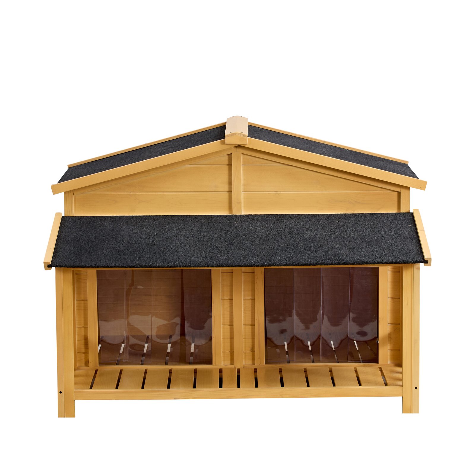 - Exquisite Porch Design: The spacious wooden dog houses feature a luxurious porch, providing your beloved pet with a tranquil retreat on sunny days. Elevated 2 inches off the ground, this design not only offers a sense of grandeur but also ensures cleanliness by preventing dirt and water from seeping underneath the kennel.