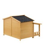 - Crafted from weather-resistant pine, this outdoor wooden dog house boasts a high-quality construction. Coated with non-toxic waterproof paint, it effectively preserves the interior’s dryness and enhances the overall durability of this wooden shelter for your beloved pet.