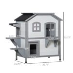 PawHut 2-story Cat House Outdoor, Weatherproof Wooden Cat Enclosure for Feral Cats with Escape Door, Openable Roof, Jumping Platforms, White