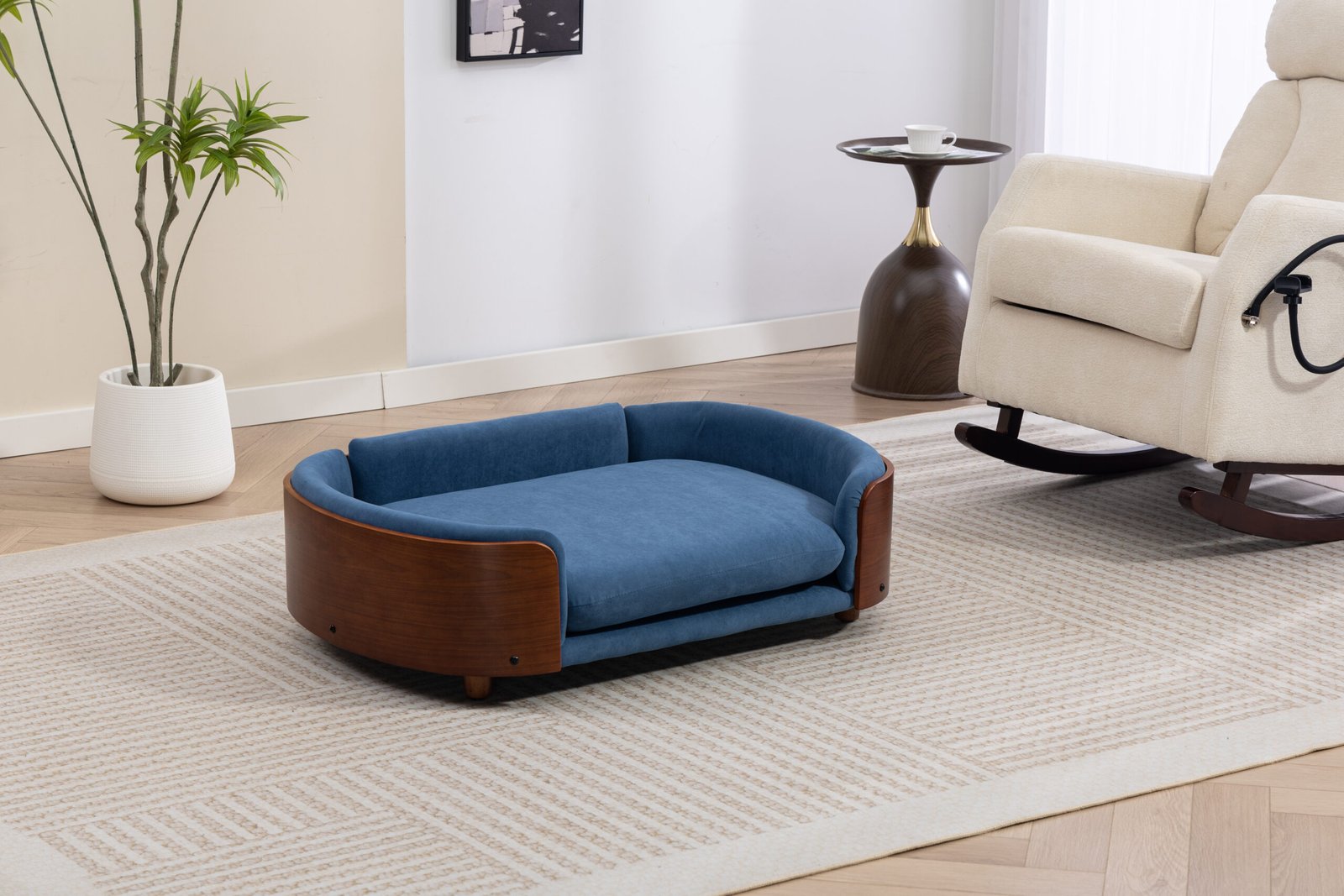 Be the first to review “Scandinavian style Elevated Dog Bed Pet Sofa With Solid Wood legs and Walnut Bent Wood Back, Velvet Cushion,Large Size” Cancel reply