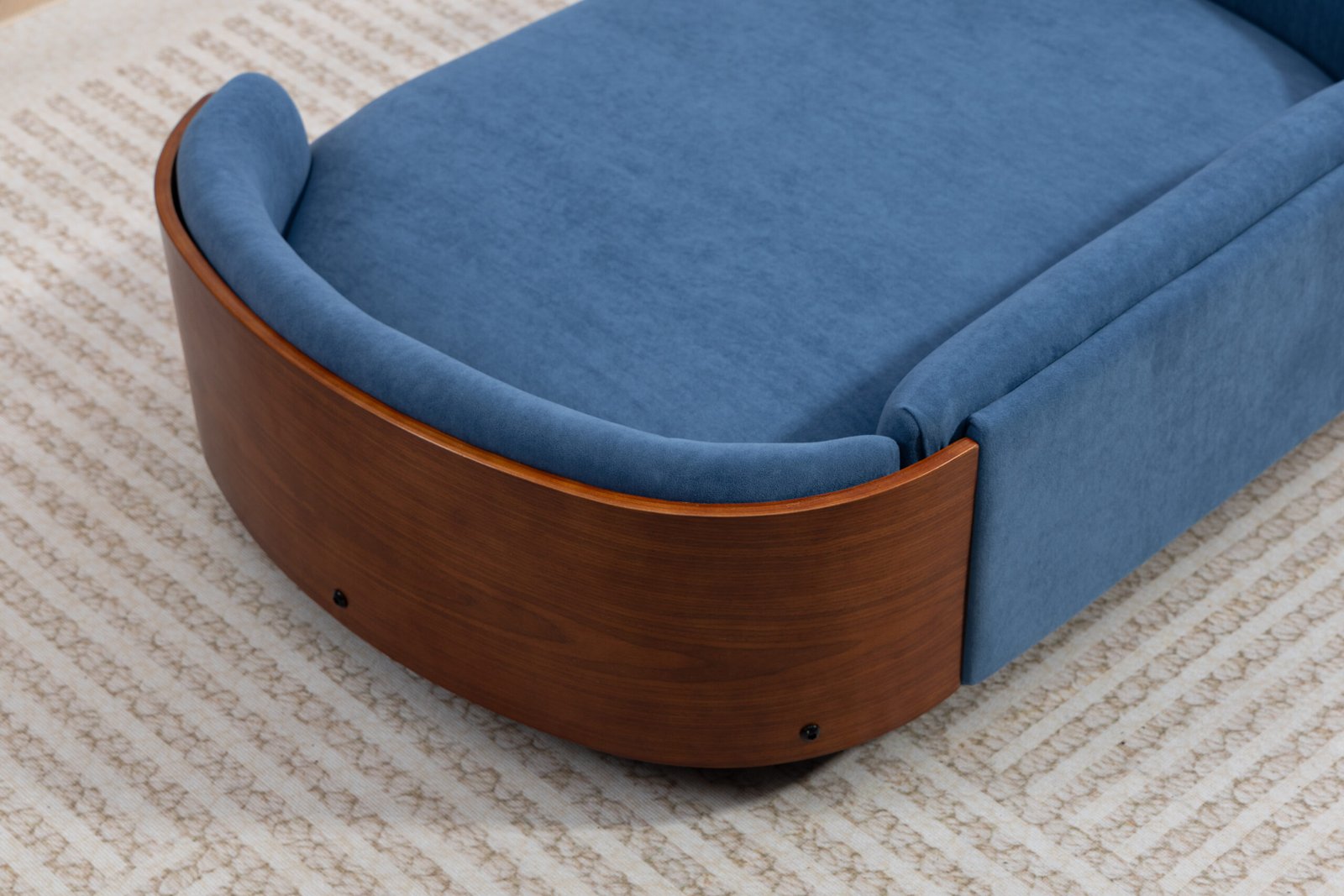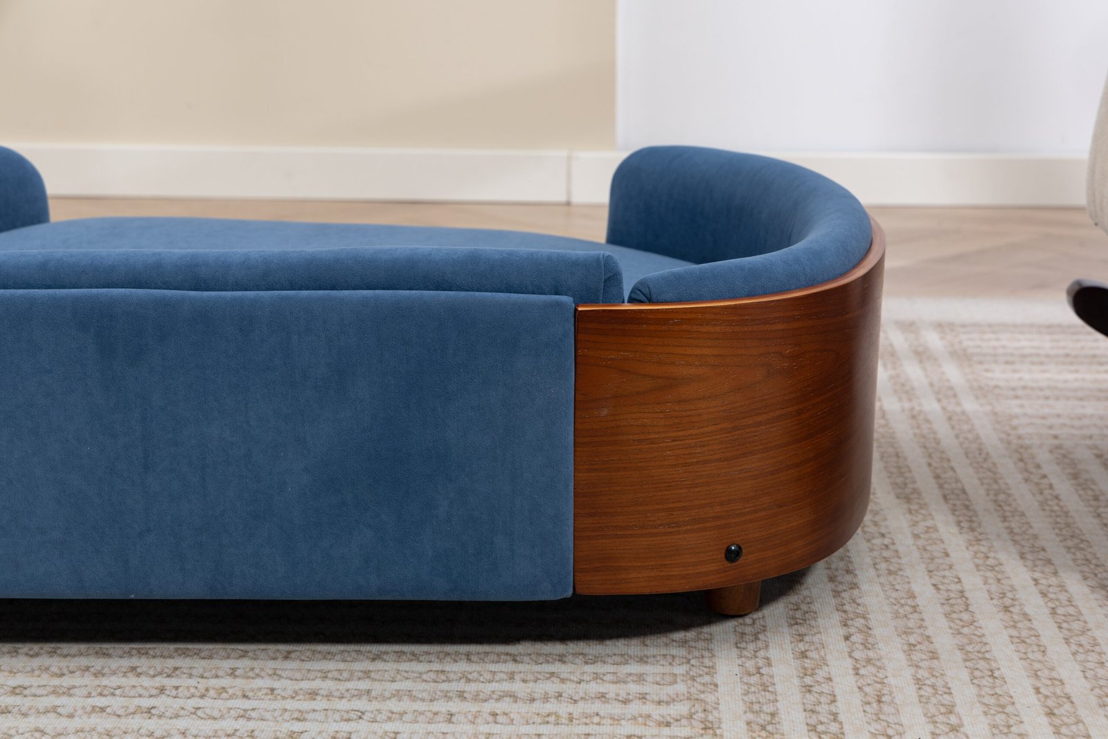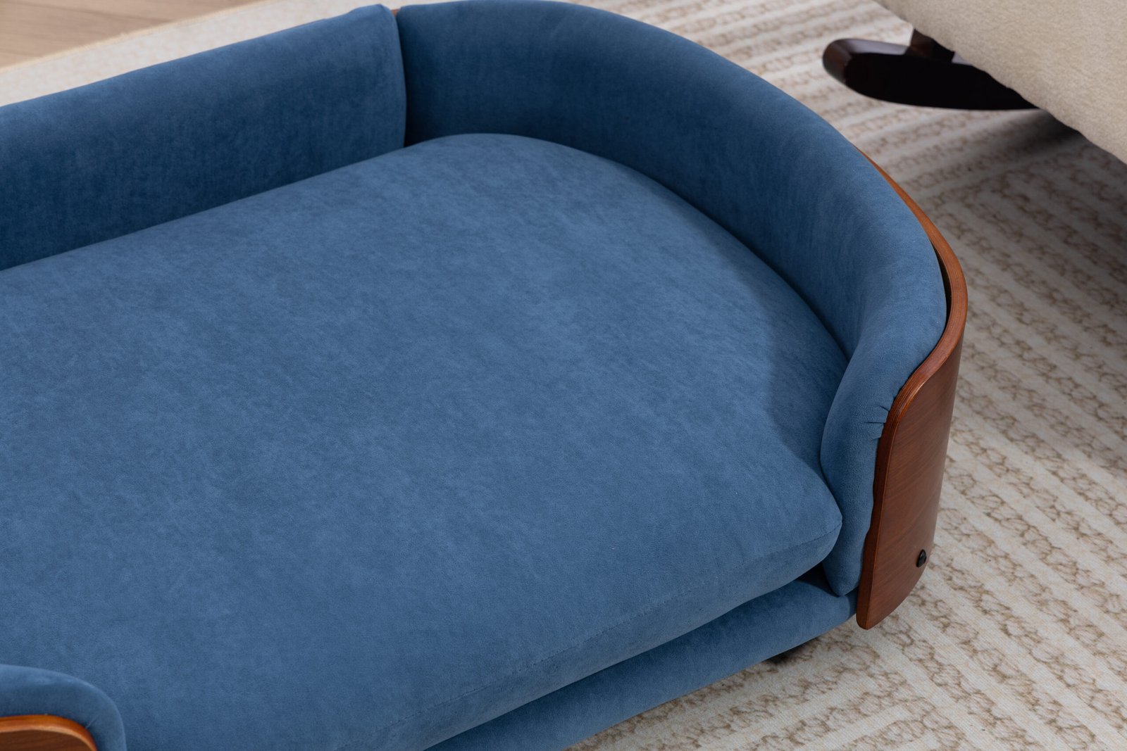 Scandinavian style Elevated Dog Bed Pet Sofa With Solid Wood legs and Walnut Bent Wood Back, Velvet Cushion,Large Size
